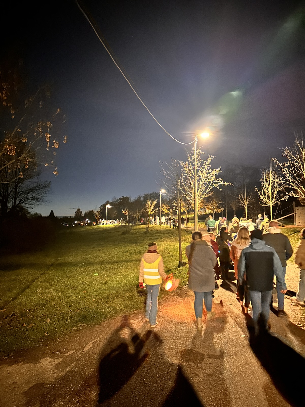 Nach dem gemeinsamen Singen startete der Laternenumzug entlang der Fußwege des Limesparks, vorbei am Römer-Spielplatz und dem grünen Spielplatz.